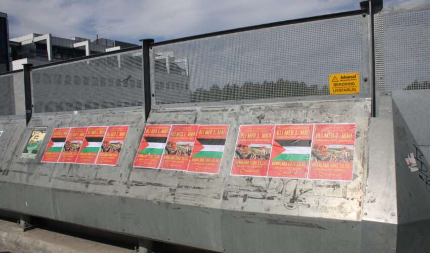 Aktivister fra Kampkomiteen i Oslo har hengt opp plakater som mobiliserer til 1. mai. Plakatene er satt opp på Søndre Nordstrand, deriblant på Holmlia, Hauketo, Mortensrud og Skullerud.