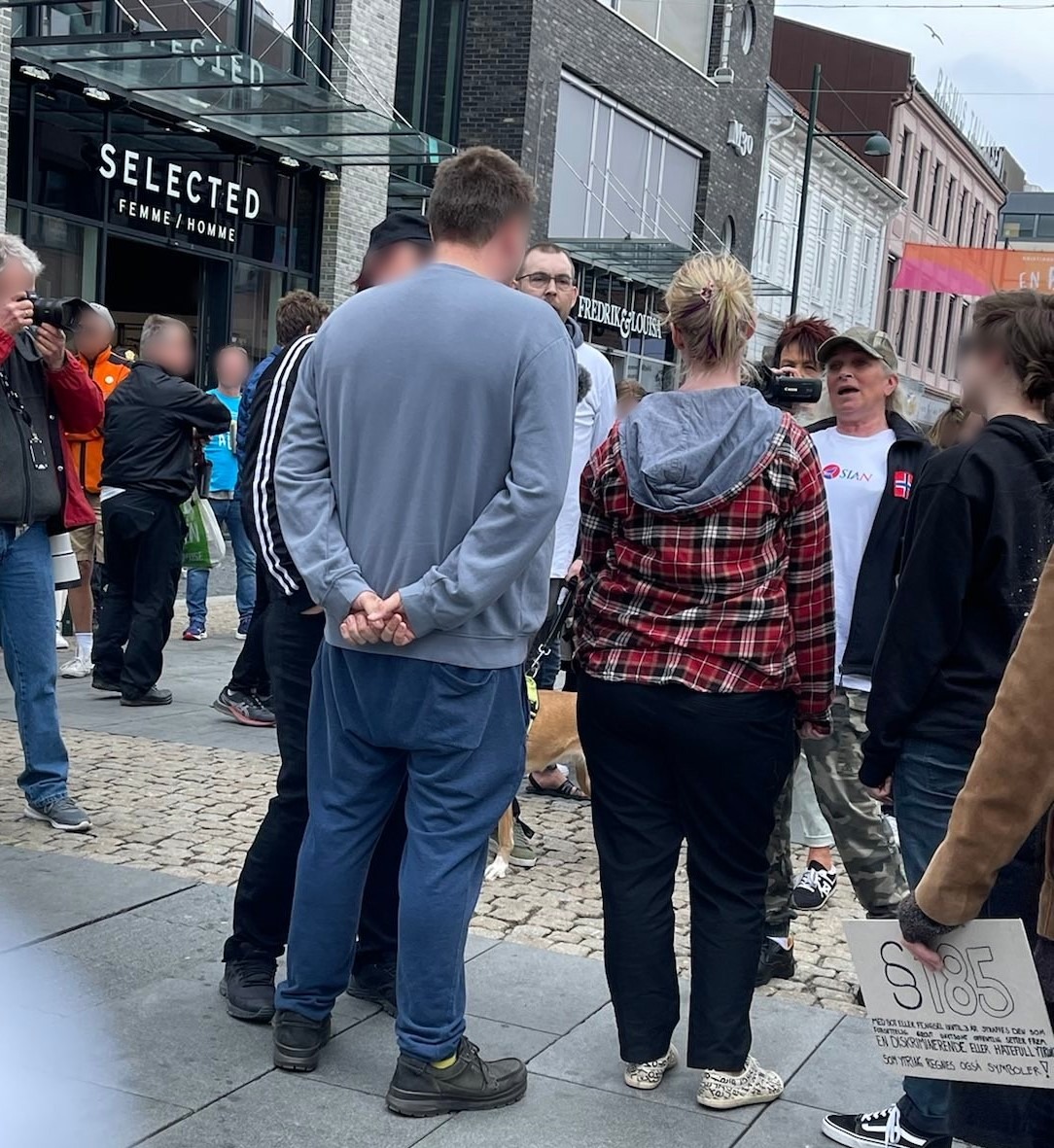 «Jeg er leder for Arendal sentrum btw, vi synes dette er veldig trist om dere gjennomfører. Ungdommens bystyre, ordfører, alle organisasjoner som jobber rundt sentrum, alle bedrifter i byen og VELDIG mange private har startet en stor kampanje for at Arendal skal være byen som lar dem stå alene. Så er det dere, som har dette som kampsak som skal gå mot og sørge for at Sian får oppmerksomheten de ønsker. Dere burde virkelig revurdere dette, alle som har jobbet i flere uker med dette vil jo legge merke til at det er deres org som gir dem akkurat det de ønsker. Har dere et ? Så kan jeg få ordfører til å ringe dere å fortelle om kampanjen? Dere burde gått i front og vært de som jobbet sammen med resten av Arendal og ikke mot tenker jeg.»