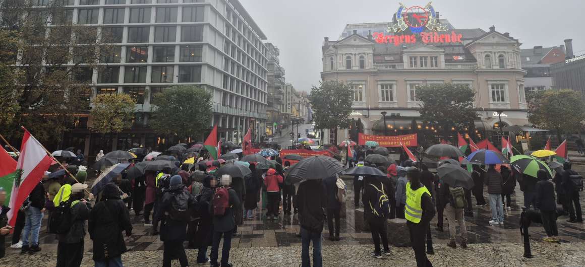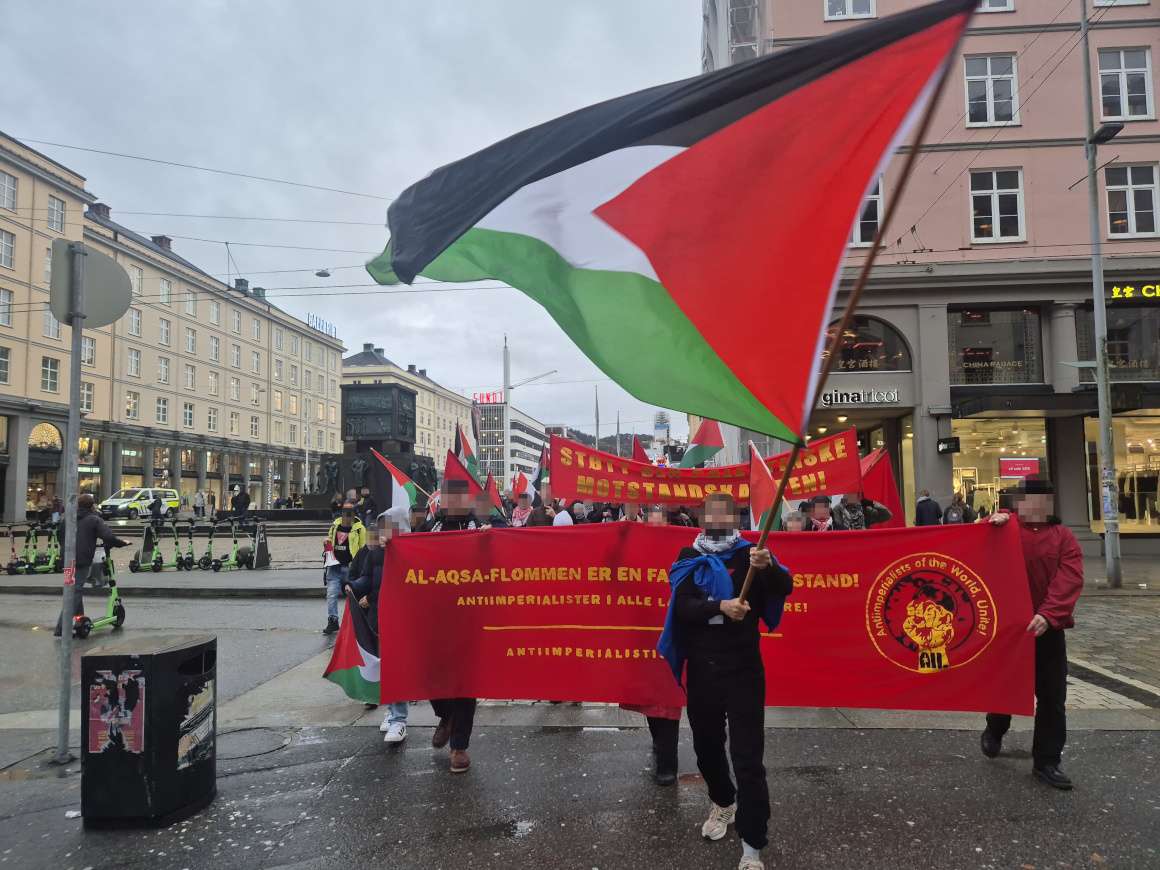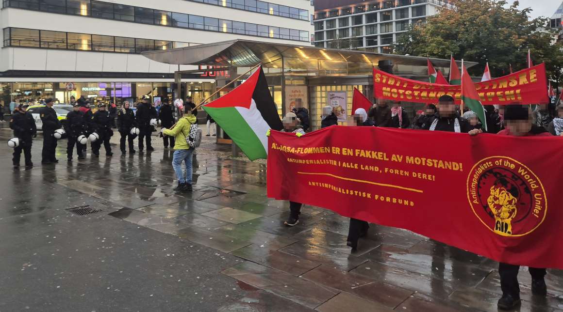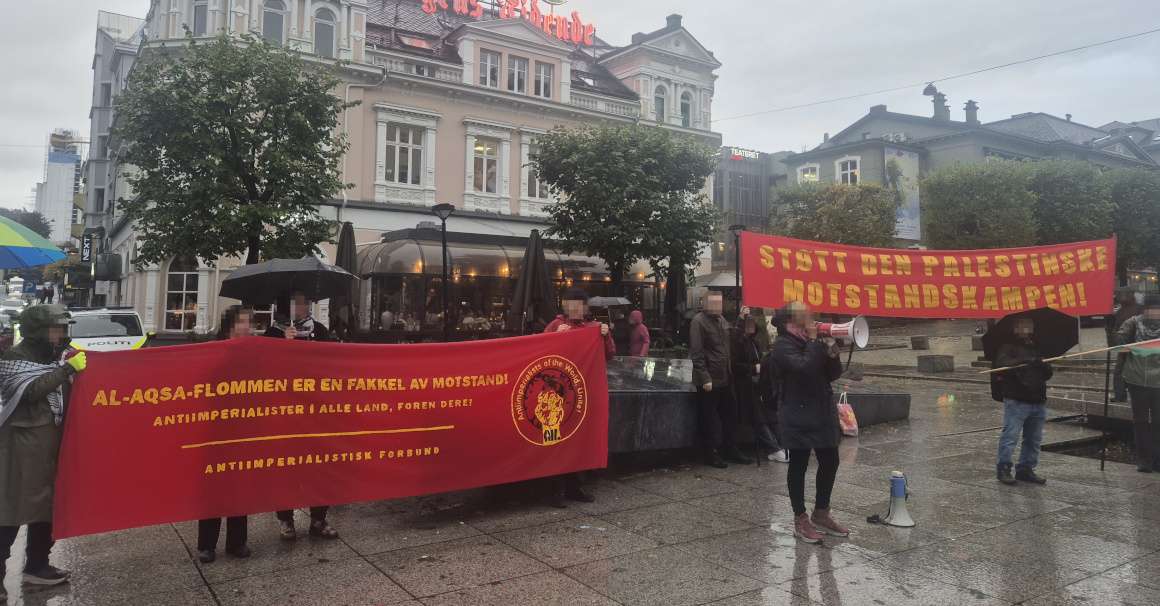 Aktivister i Bergen samlet seg 7. oktober ved Den blå steinen i sentrum for å markere 2-års dagen for operasjon Al-Aqsa Flood, som har gitt en kraftig impuls til verdens undertrykte folk til kamp mot imperialismen. Kampkomiteen deltok med appell, røde flagg, et flagg fra Antiimperialistisk Forbund og to banner til støtte for den palestinske motstandskampen. Tilsluttet markeringen var også Bergen4Palestine, Rød Front, partiet FOR og Revolusjonært Kommunistisk Forund. Det ble også holdt appell og lest dikt av to aktivister fra Palestina.